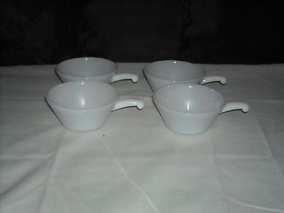 SET OF 4 ANCHOR HOCKING FIRE KING OVEN PROOF 5" BOWL W/ HANDLE WHITE MILK GLASS