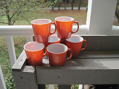 Set of 5 Corning Pyrex Milk Glass Orange Coffee Cup Mug Cinnamon Rust ~D Handle