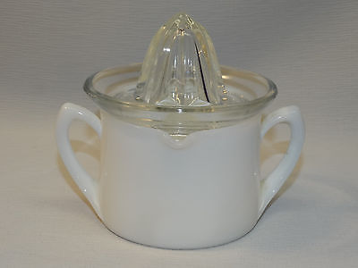 VINTAGE FENTON GLASS BABY REAMER JUICER W/ PITCHER WHITE MILK GLASS CLEAR TOP