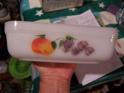 fire king milk glass fruit design loaf pan