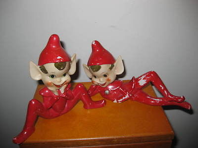 VINTAGE 1950's CHRISTMAS JAPAN CERAMIC PIXIE ELVES FIGURINES - #7333