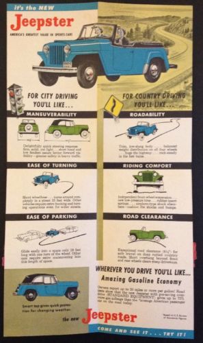 Title (ebay affiliate link): Vintage 1949 Willys Overland Jeepster Convertible Dealer Advertising RARE VGC