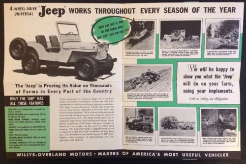 Title (ebay affiliate link): Vintage 1949 Willys Overland Jeep 4 Wheel Drive Universal Dealer Advertising VG