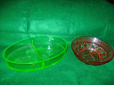 2 PIECES OLD GLASS VERY NICE, GLOW GREEN DEPRESSION?!!!