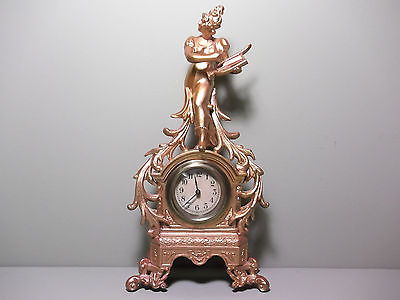 Late 1800's Antique Art Nouveau Wind-Up Mantle Clock with Harp Player Musician