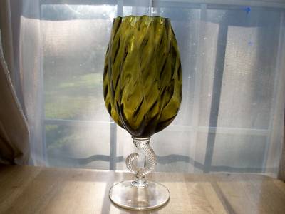 Title (ebay affiliate link): Vtg Spiral Stemmed Green Glass Vase Clear Glass Stem