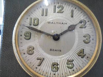4518: Antique Waltham 8 Day Travel or Car Clock in Green Case Great Dial