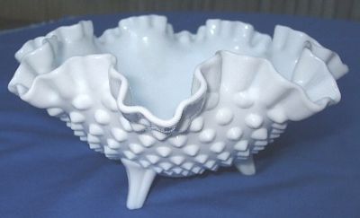 FENTON PRE LOGO MILK GLASS HOBNAIL 3 TOED 8" BOWL