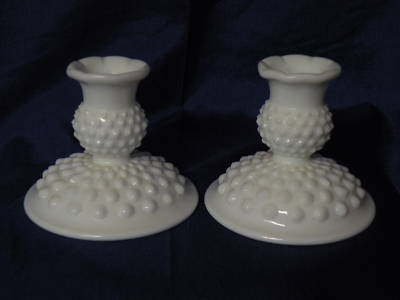 Pair of Fenton Milk Glass Hob Nail Taper Candle Holders