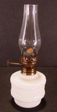 VINTAGE MINIATURE MILK GLASS OIL LAMP