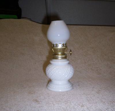 Title (ebay affiliate link): Lovely miniature milk glass oil lamp