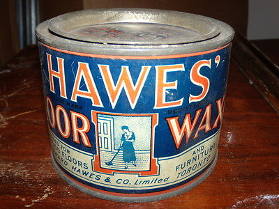 Title (ebay affiliate link): VINTAGE HAWES FLOOR WAX TIN & LID., TORONTO CANADA, ART DECO,WHITTALL CAN CO.