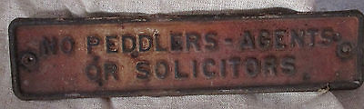 Vintage sign"No Peddlers-Agents or Solicitors" --farm, home, business-old metal