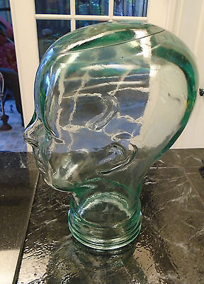 Vintage Clear Glass Green Tint Mannequin Head Hat Wig Display -