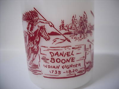 DANIEL BOONE milk glass coffee cup OLD indians trapping