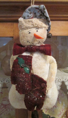 Title (ebay affiliate link): Handmade SNOWMAN & Mittens Decoration - Prim Hanging Ornie - Folk Art Christmas