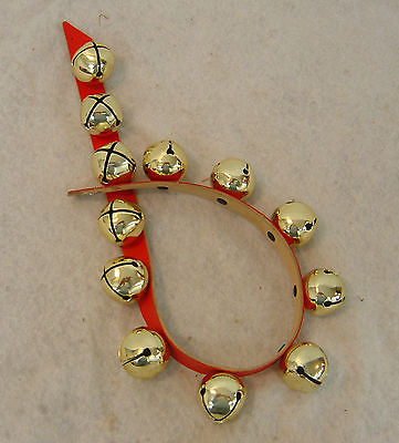 Brass Sleigh Bells String of 12 Red Leather Strap 27 Inches Long Great Sound