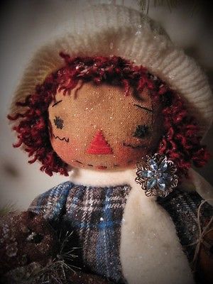 Title (ebay affiliate link): Primitive Folk Art Winter Raggedy Ann Doll~Gingerbread Man~Brooch