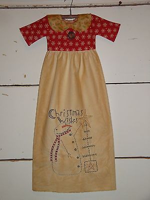 Primitive Doll Dress-Christmas Wishes-Folkart Handmade Stitchery Home Decor