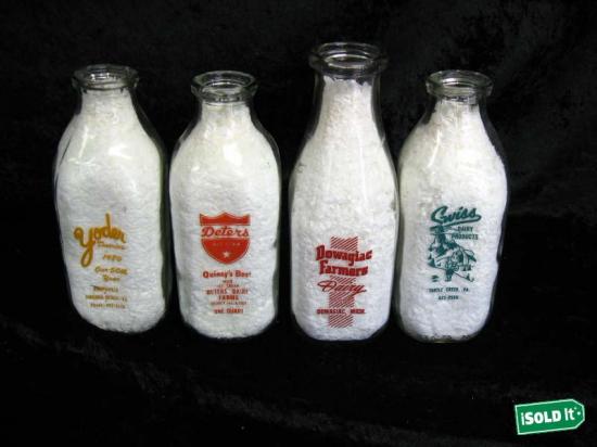 4 VINTAGE MILK BOTTLES YODER DETERS SWISS DOWAGIAC