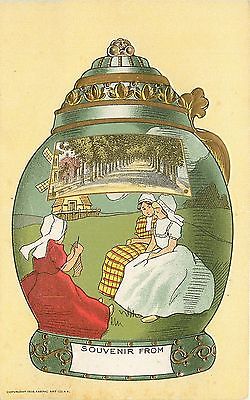 Souvenir Beer Stein Mug~Dutch Girls~Windmill~Village Street~Gold Leaf Emboss~'08