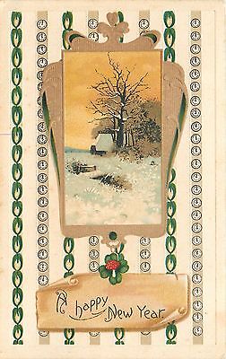 Title (ebay affiliate link): New Year~Red White Mushroom on Ornate Portal Frame~Clock Wallpaper~EMB~Germany