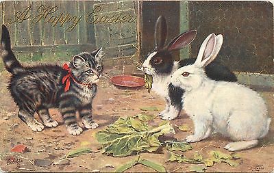 Easter~TUCK Series "Among the Bunnies"~Cat Watches Rabbit Munch Lettuce~B Cobbe