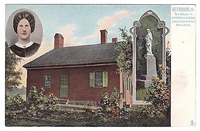 Title (ebay affiliate link): 1907 GETTYSBURG PA. HOUSE WHERE JENNIE WADE WAS KILLED & HER MONUMENT TUCK PC