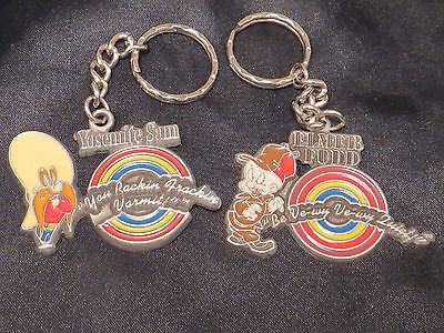 (1)Yosemite Sam & (1)Elmer Fudd Vintage Rare Metal Enamel Keychain Warner Bros.