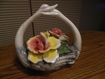 Capodimonte hugging Swans basket with Flowers
