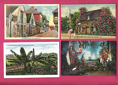 a 4 POSTCARDS FROM ST.AUGUSTINE FLORIDA-1940s OLDEST SCHOOL HOUSE,1940s OLD CHA