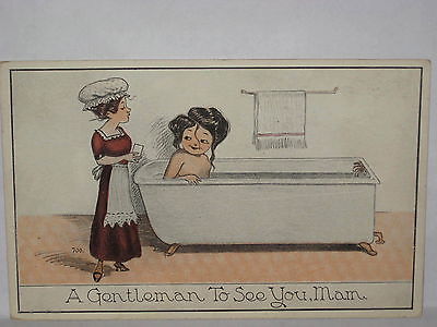 1924 POSTCARD LADY IN TUB -A GENTLEMAN TO SEE YOU MAM