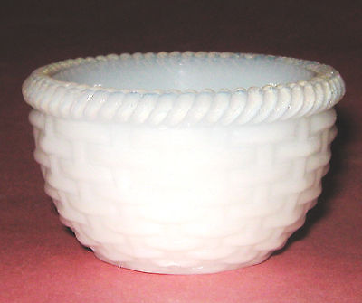 Title (ebay affiliate link): GILLINDER MILK GLASS BASKETWEAVE SALT, OPEN SALT, DIP, DISH - C.1905 - VERY NICE