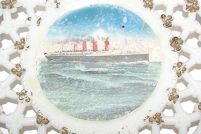 RMS LUSITANIA SOUVENIR MILK GLASS PLATE 1900'S RARE