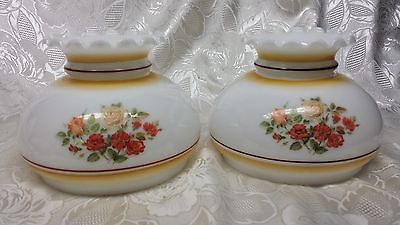 Two 8" White Milk Glass with floral mustard Hurricane Lamp Shades 7" fitter
