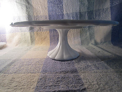 Vintage White Milk Glass Pedestal Cake Plate 14" x 4 3/4" Open Lace Rim