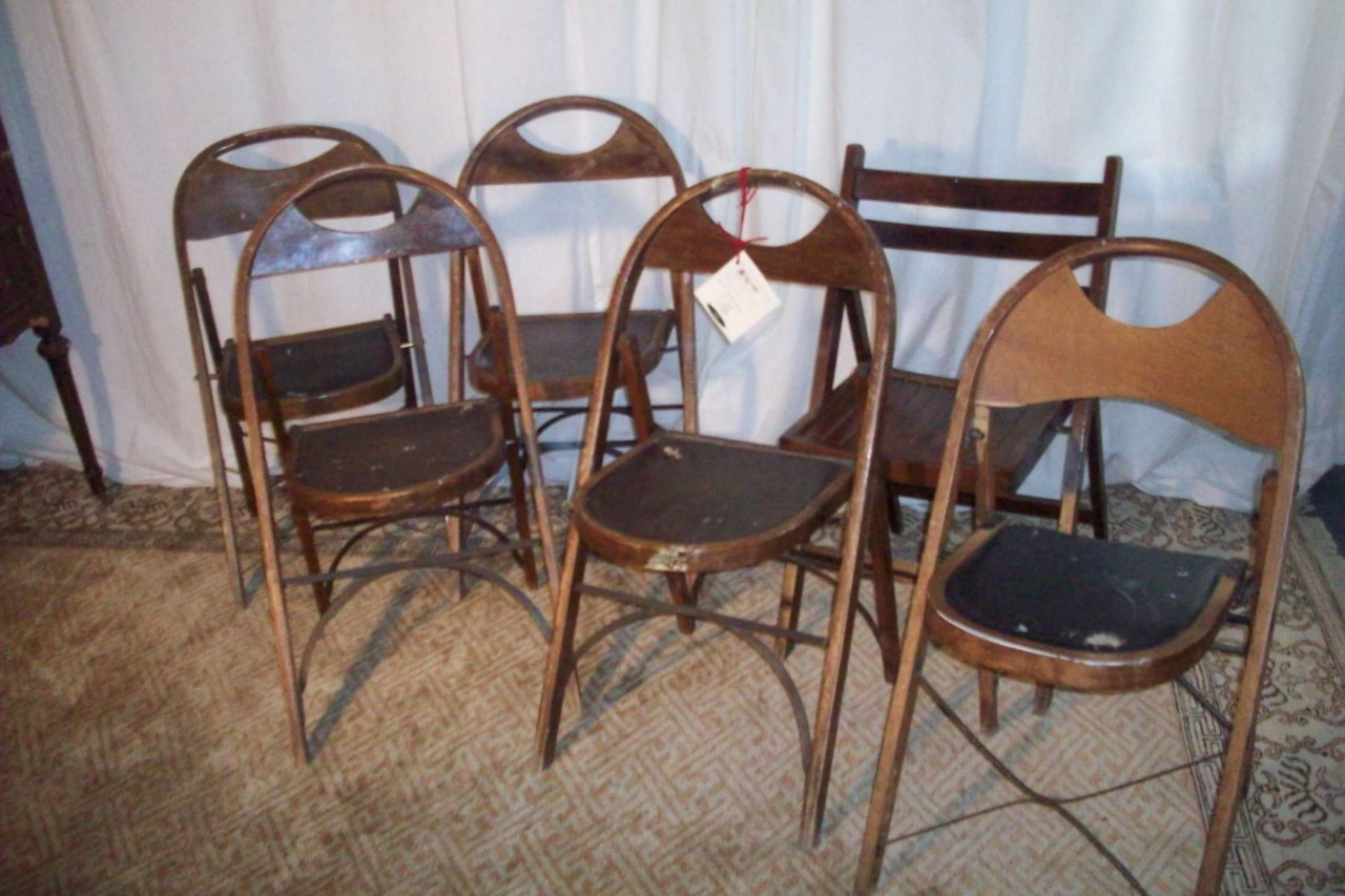 Old Folding Chairs with Leather Seats Antique