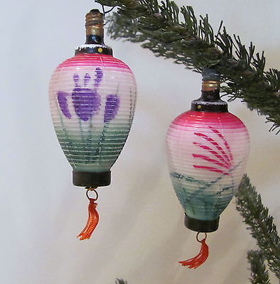 2 Vintage MILK GLASS CHINESE LANTERN Hand Painted CHRISTMAS Ornament TREE LIGHT