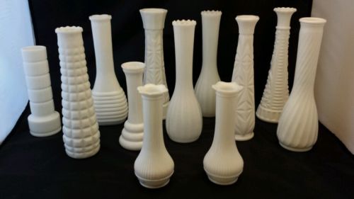 Title (ebay affiliate link): Vtg White Milk Glass Bud Vase Lot 12 Mixed Random Florist Wedding Reception