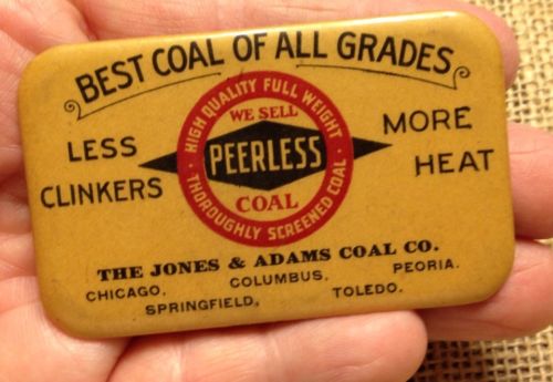 Vintage advertising Pocket Mirror-Peerless Coal-Jones & Adams Coal Co-celluloid