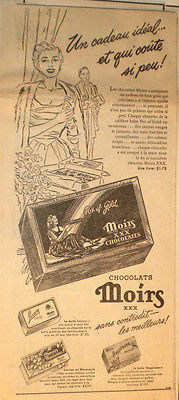 1950 MOIRS XXX POT OF GOLD CHOCOLATES ORIGINAL ERA AD IN FRENCH