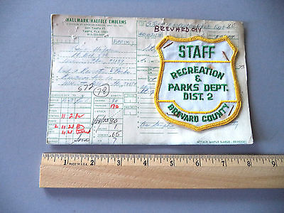 Brevard County Florida Recreation & Parks Dist2 Staff 1973 Sample patch on card