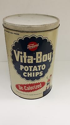 Title (ebay affiliate link): Original Vita-Boy Potato Chips Tin -1 LB - "De-Calorized"