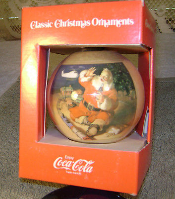Title (ebay affiliate link): COCA-COLA CLASSIC GLASS CHRISTMAS BALL Ornament w/box Santa Clause & Train NOS