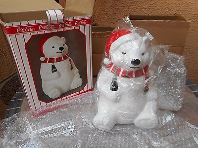 NIB COKE 1996 COCA-COLA HOLIDAY POLAR BEAR COOKIE JAR CERAMIC NEW