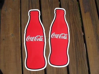 2 -QUALITY COCA COLA HEAVY VINYL BOTTLE DECALS PEEL AND STICK N.O.S.