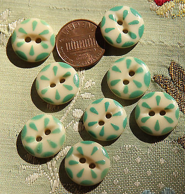 ANTIQUE CHINA STENCIL BUTTONS 8PC FRENCH DOLL 5/8" WIDE GREEN FLOWER CHINA BEARS