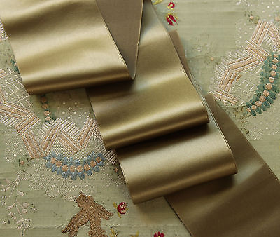ANTIQUE SILK SATIN GOLDEN OLIVE RIBBON TRIM FRENCH DOLLS MILLINERY HOLIDAY