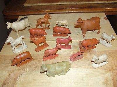 Vintage Marx MPC Plastic Farm Animals Set 18 Pcs Cows Cattle Horses Pigs Sheep +
