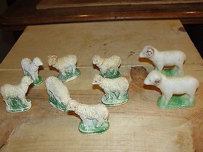 Vintage Chalk & 2 Piece Plastic Farm Animals Set Sheep Rams 1950s